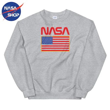 Pull NASA Gris avec logo Rouge NASA et drapeau US